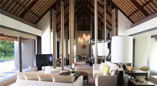 整个别墅是三进式设计,整整280平方米只住两个人,居住面积是有点儿奢侈。最喜欢霸气的挑高了---7米!房间的室内设计是由法国的建筑大师Jean Michel-Gathy亲自操刀的,他很好地结合了马代当地的天然用材和LVHM想要传达的现代简洁理念。