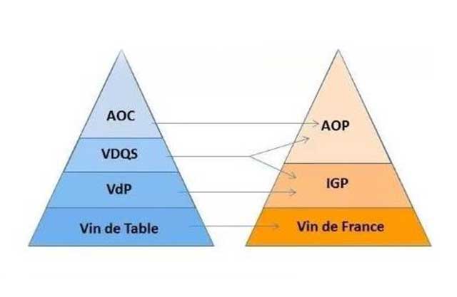 上述分级在很长一段时间里都制约着法国酒农和生产商的生产行为,直到 1992 年,欧盟正式确立了 PDO 体系,目的是为了保护欧盟国生产的农产品。为了响应欧盟的改革并配合欧洲农产品级别标注形式,法国也于 2009 年进行了一次改革,于是新的 AOP 体系取代了原有的 AOC 制度;VDQS 这一等级在 2011 年被正式撤销,原有的 VDQS 葡萄酒或被提升或被降级;所有的 VdP 和 VdT 葡萄酒分别被 IGP 和 VdF 取代。