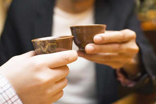 古代饮白酒的礼仪约有四步:拜、祭、啐、卒爵。就是先作出拜的动作,表示敬意,接着把酒倒出一点在地上,祭谢大地生养之德;然后尝尝酒味,并加以赞扬令主人高兴;最后仰杯而尽。在酒宴上,主人要向客人敬酒,客人要回敬主人,敬酒时还有说上几句敬酒辞。客人之间相互也可敬酒。有时还要依次向人敬酒。敬酒时,敬酒的人和被敬酒的人都要“避席” ,起立。普通敬酒以三杯为度。