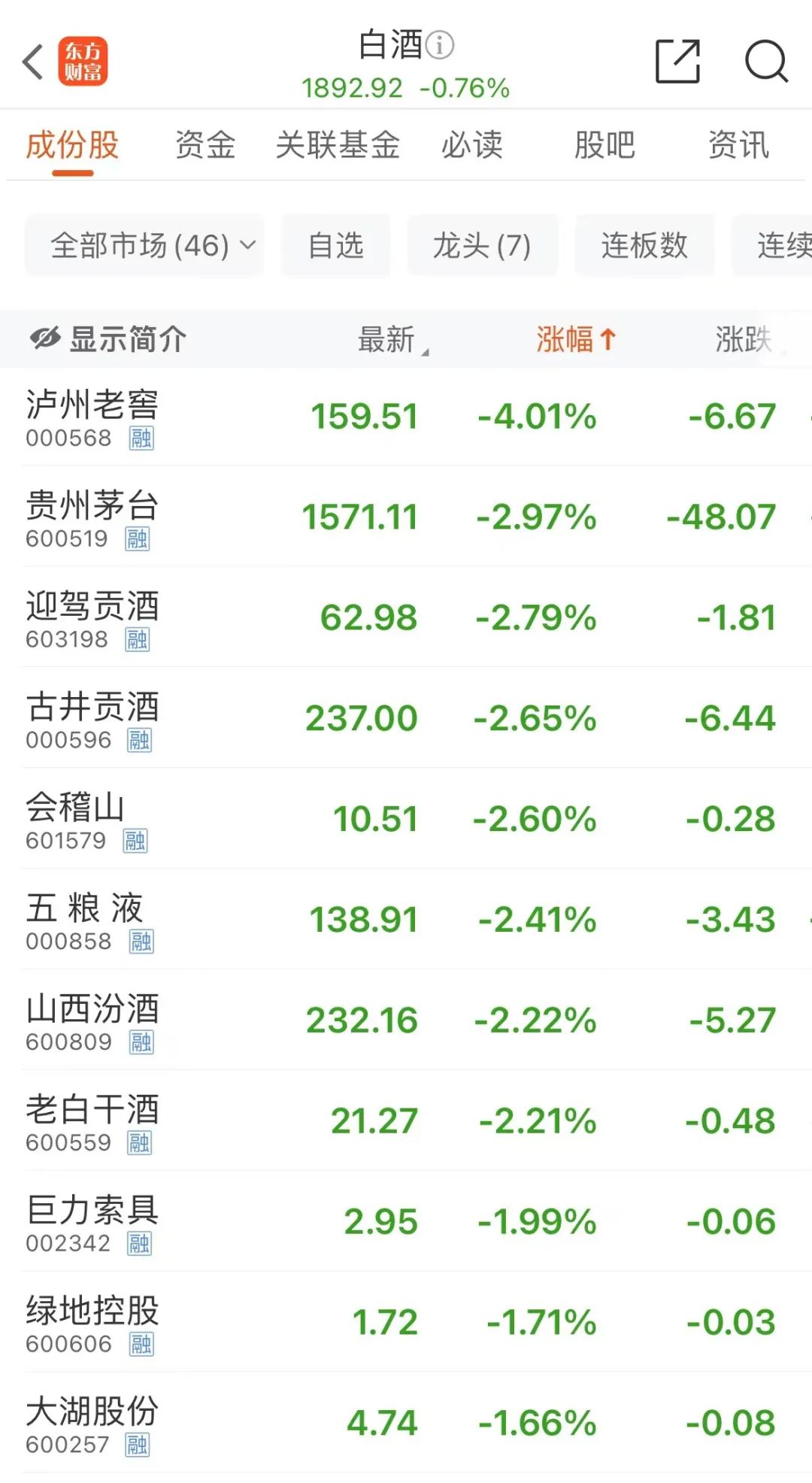 今天早盘,白酒股持续走低,泸州老窖、古井贡酒跌超4%,贵州茅台、山西汾酒、五粮液跌超2%。而白酒行情亦发生了一件让人意外的事。
